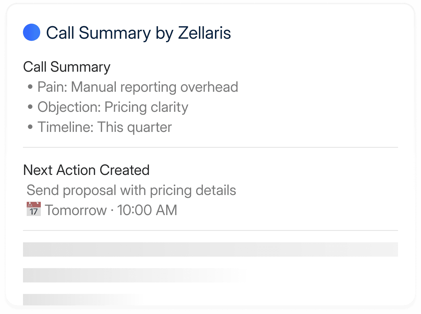 Zellaris helps sales teams communicate with empathy, act with clarity, and close with confidence — powered by AI that works quietly behind every call.